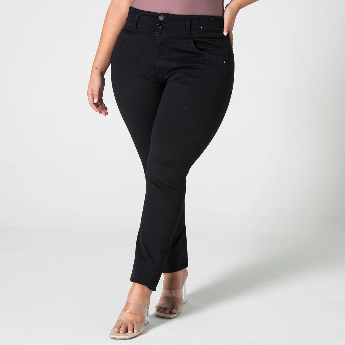 Pantalón Glam es una prenda que destaca por su silueta Slim, diseñada para realzar la figura con un ajuste moderno y elegante. Su pretina de tres botones y cierre de cremallera brinda un toque sofisticado y un fit preciso. En la parte frontal, cuenta con bolsillos funcionales y un bolsillo relojero, ideales para un uso práctico sin sacrificar el estilo. En la parte posterior, los bolsillos tipo parche añaden un detalle adicional que complementa su estética.