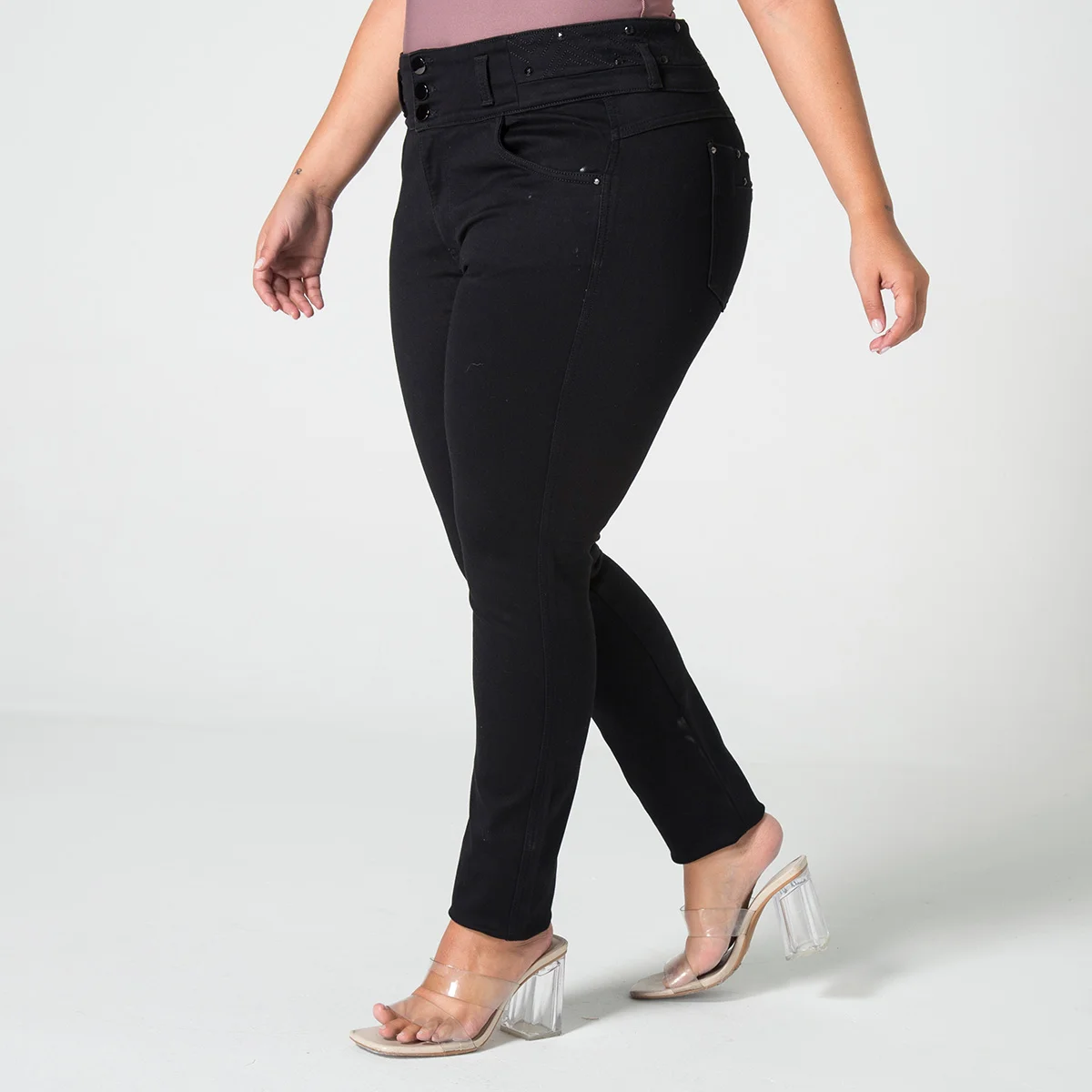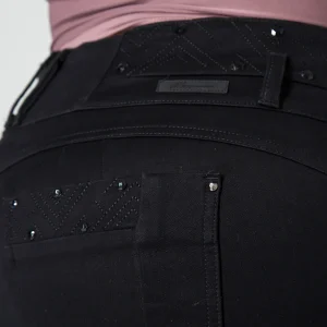 Lo que realmente distingue a este pantalón son los exquisitos detalles de pedrería en la pretina y en los parches, que aportan un brillo especial y un toque glamuroso a la prenda. Es una opción perfecta para quienes buscan un look distintivo, combinando la comodidad cotidiana con un aire de elegancia moderna. Ideal para ocasiones especiales o para darle un giro chic a tu día a día.