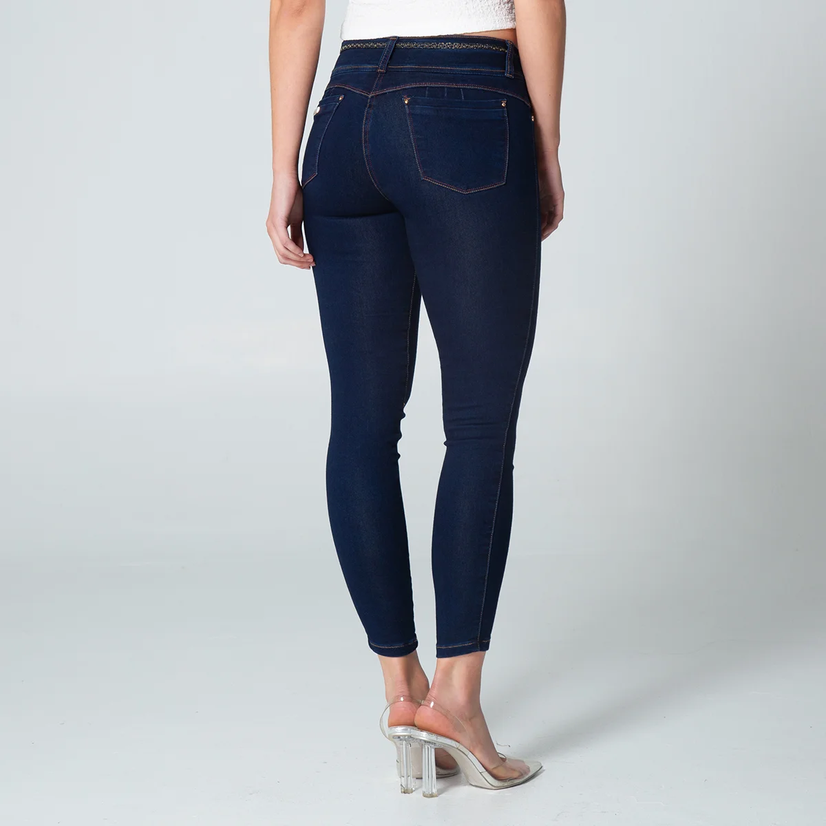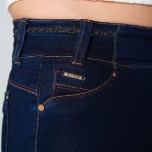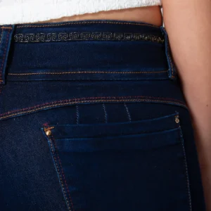 Para mantener una silueta frontal limpia y estilizada, presenta una imitación de bolsillo y relojero, en la parte posterior, la prenda está diseñada estratégicamente con bolsillos tipo parche y pinzas de realce que garantizan un ajuste favorecedor y un efecto push-up.
