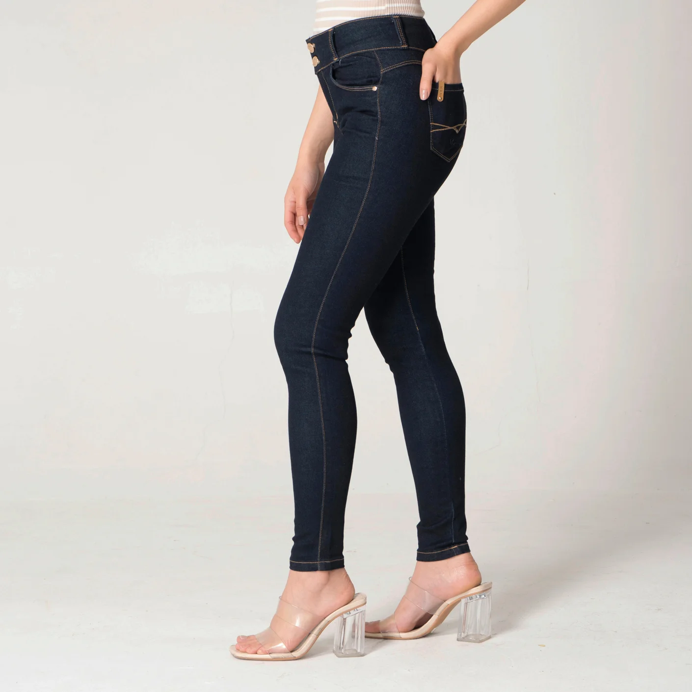 Pantalón Vend en denim es una prenda que combina estilo y comodidad, silueta skinny. Diseñado especialmente para resaltar la figura femenina, cuenta con una pretina de dos botones que asegura un ajuste perfecto y sofisticado.