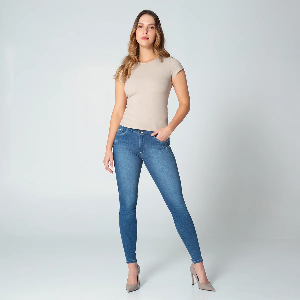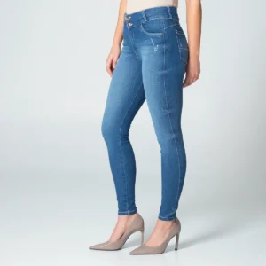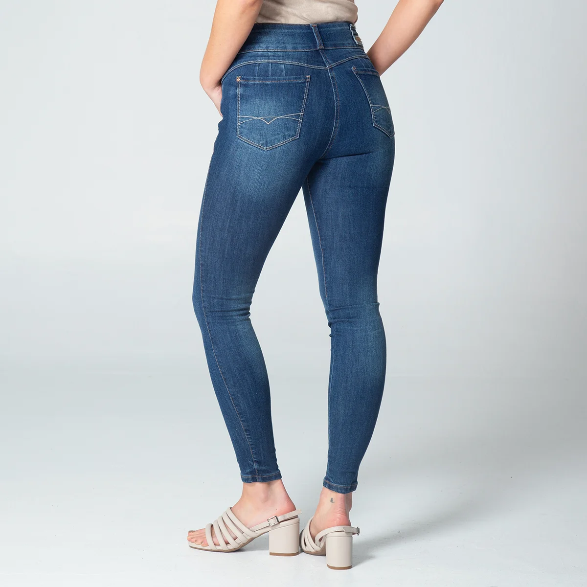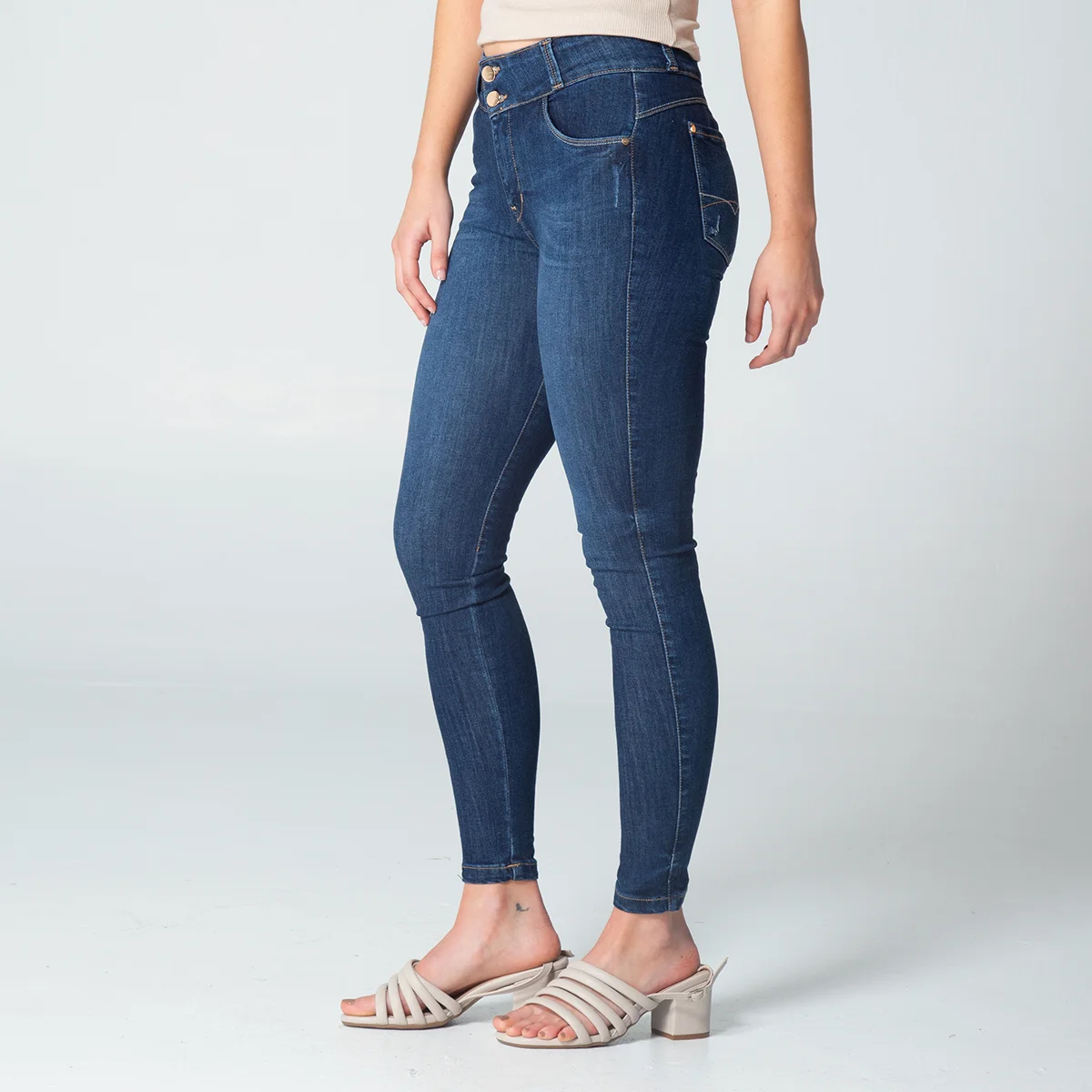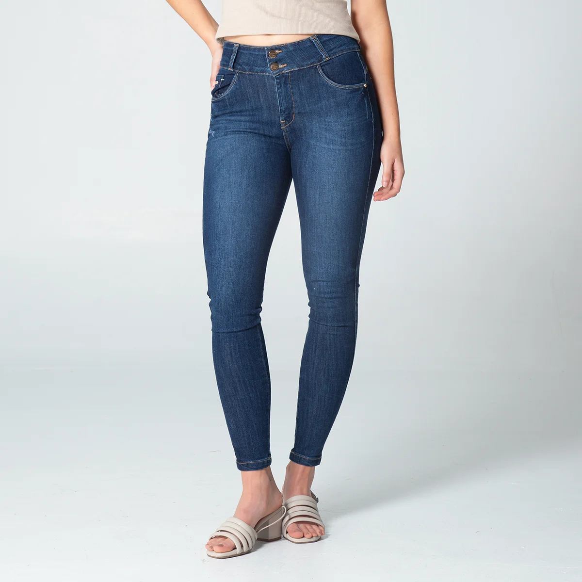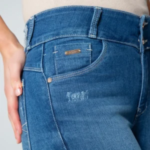 pantalon vendix en denim, pretina de dos botones y cierre de cremallera.en su parte frontal cuenta con bolsillos redondos y relojero, en su parte posterior cuenta con bolsillos tipo parche y pinzas de realce.