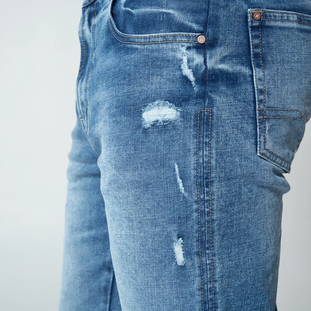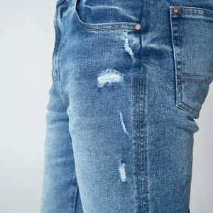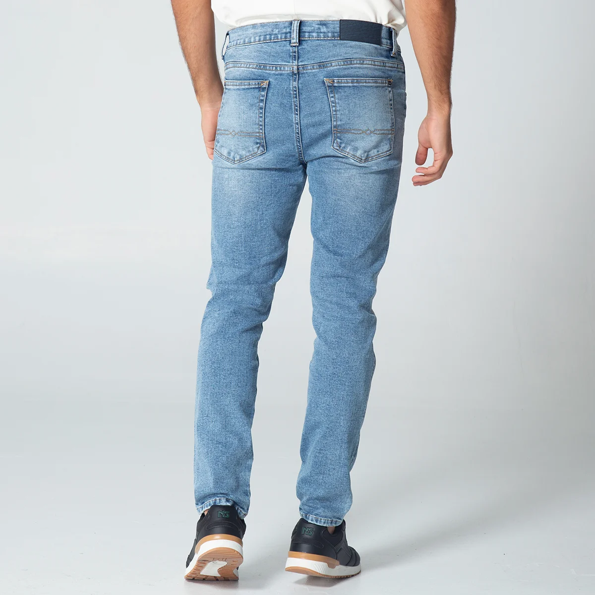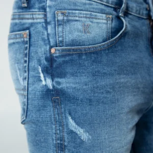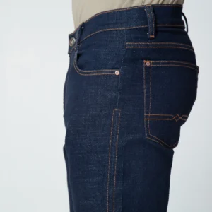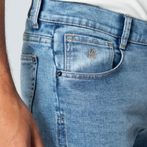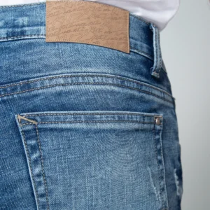 Cuenta con una pretina clásica de un solo botón en la parte frontal, incorpora bolsillos redondos y un bolsillo relojero que presenta un sutil detalle bordado.
