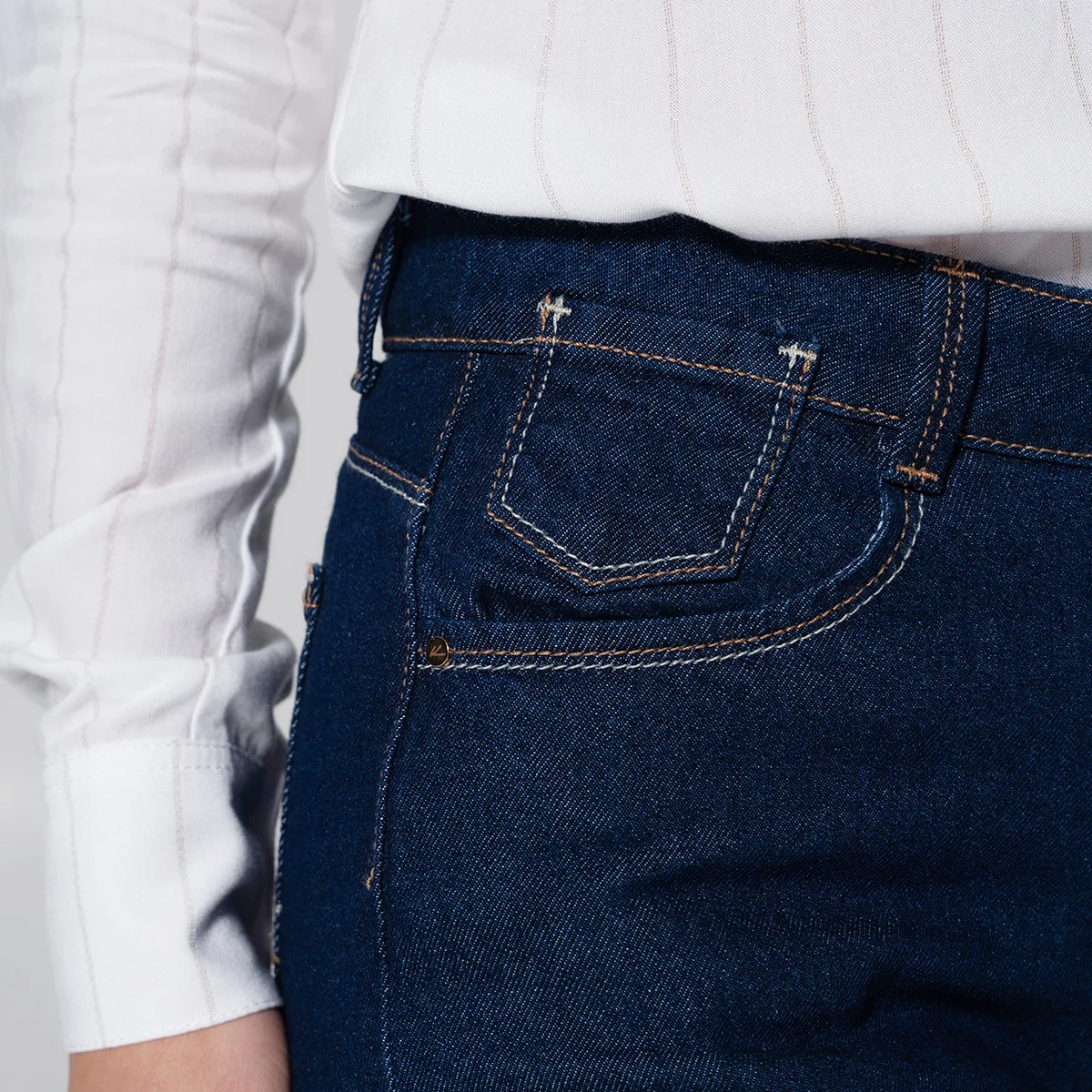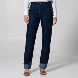 Pantalón Cuff en denim es una prenda clásica y funcional, diseñada para ofrecer comodidad y un ajuste perfecto, su pretina está asegurada con un sistema de cierre de cremallera complementado por un único botón.