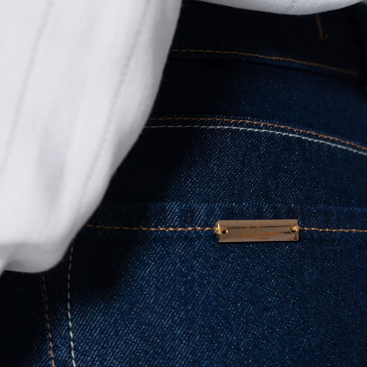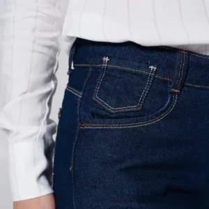 La parte frontal del pantalón mantiene el diseño tradicional con dos bolsillos redondos y un práctico bolsillo relojero, todos completamente funcionales, en la parte posterior cuenta con dos bolsillos tipo parche que realzan la silueta y añaden el toque icónico del denim.