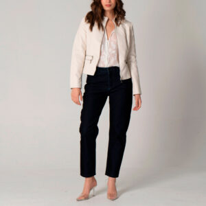 Esta prenda está elaborada en Denim Velvet, un denim con textura aterciopelada que te hará destacar por su elegancia y brillo.