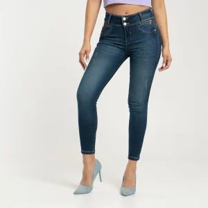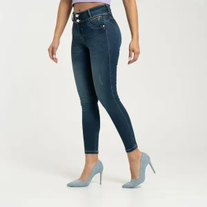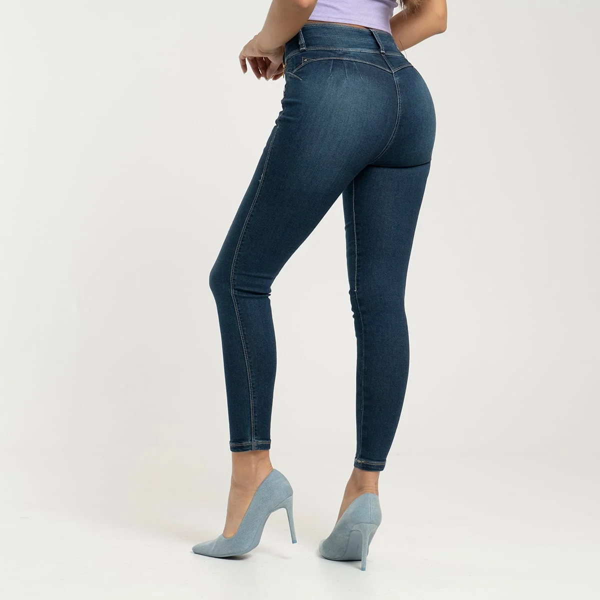 Pantalón Miss Six se ajusta perfectamente a tu figura gracias a su silueta skinny, pretina de dos botones con detalle de corte por contorno. En la parte frontal este jean cuenta con imitación de bolsillos redondos con pestañas y cremalleras decorativas, su parte posterior cuenta con cotilla y pinzas de realce.