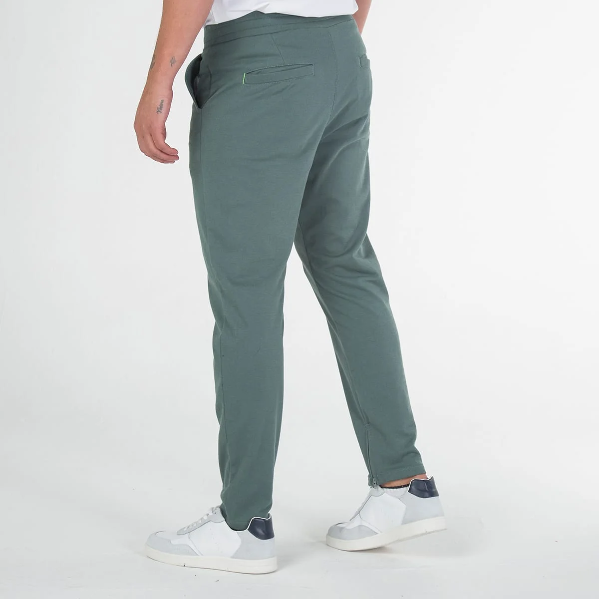 Pantalón Tedd en tejido de punto, silueta carrot. Cuenta con pretina encauchada con canal de cordón de ajuste y cierre de botòn, su parte frontal cuenta con detalle de costura marcada y tiene bolsillos diagonales, su parte posterior tiene bolsillos tipo ribte y en sus botas por entrepierna cuenta con detalle de cremallera.
