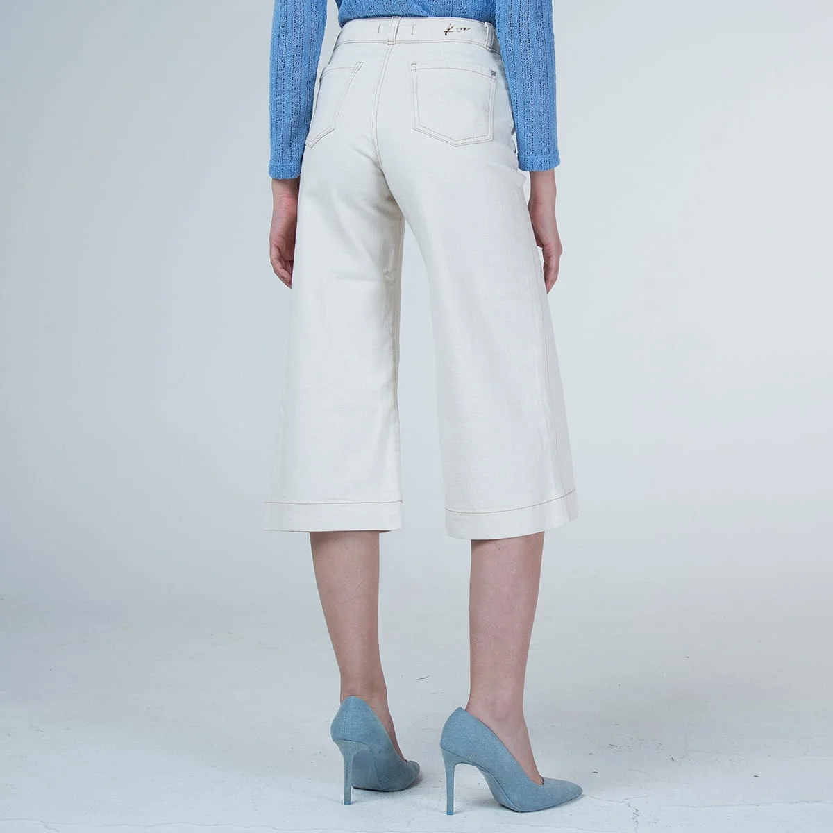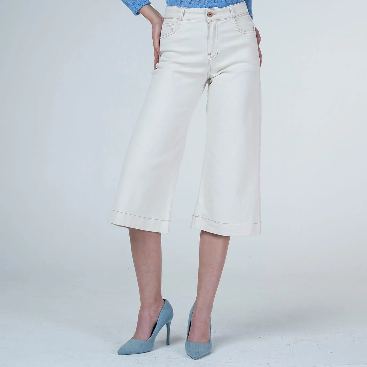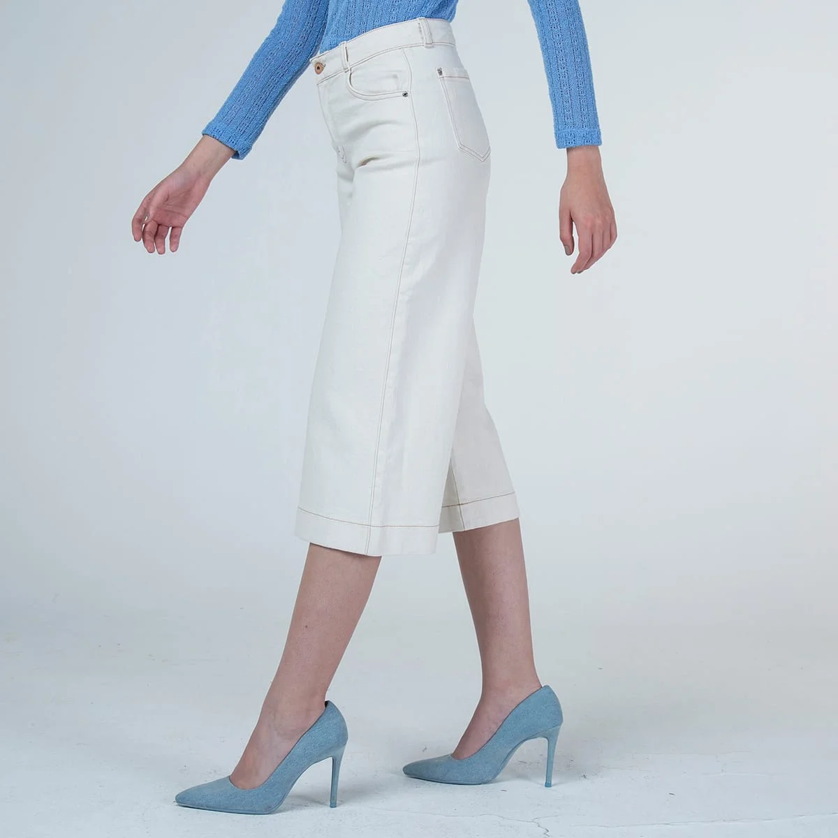 Jean Épico en silueta Culotte es una prenda muy versátil y moderna. Su silueta ancha y corta le da un toque elegante y chic a cualquier outfit. La pretina de un solo botón le da un detalle sutil pero sofisticado.
