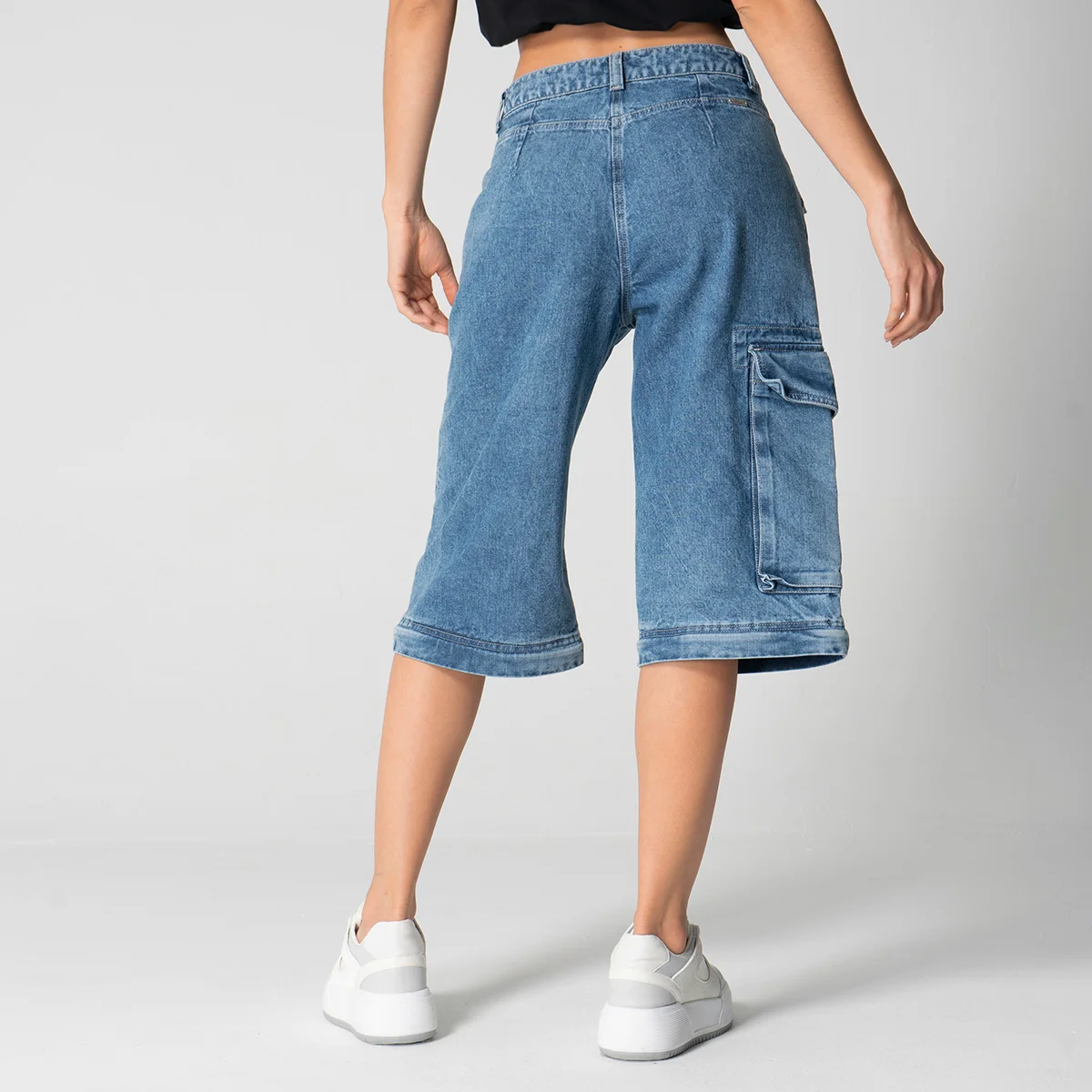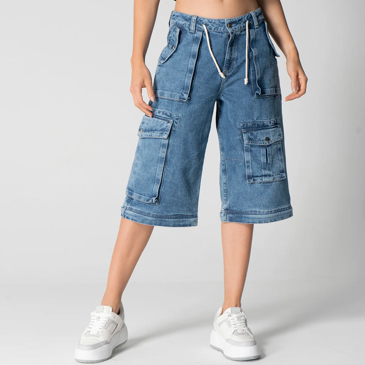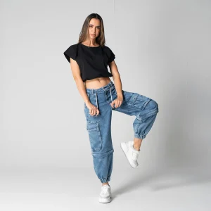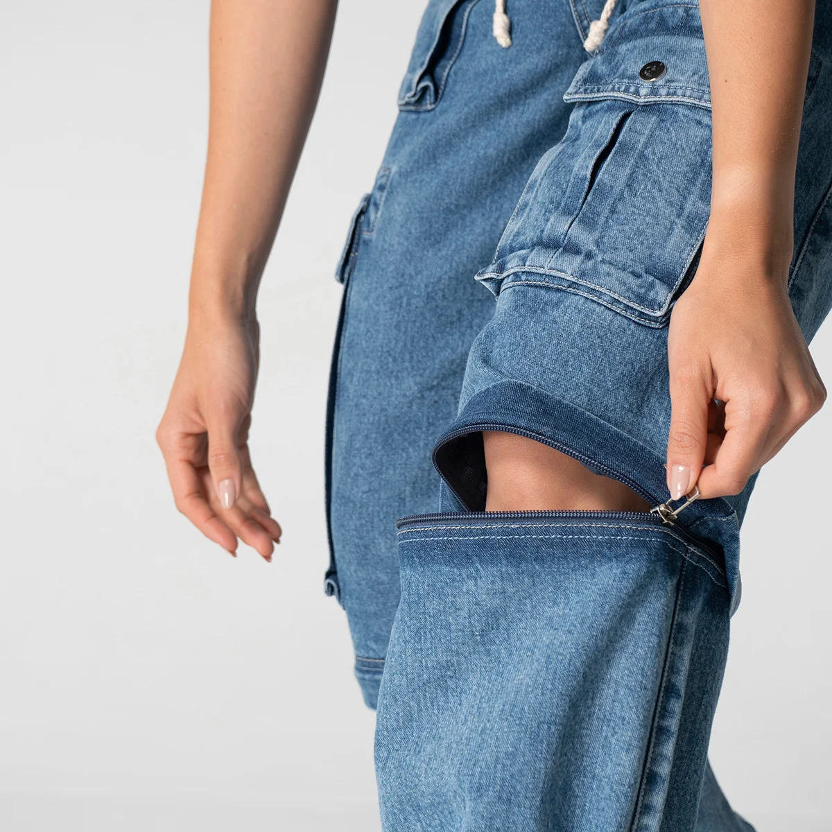 Pantalón Cargo en Denim, diseñado para aquellos que buscan comodidad sin sacrificar la moda. Este pantalón cuenta con una pretina ajustable con un botón y cordón, permitiendo un ajuste personalizado para cada figura. La cremallera frontal asegura un cierre seguro y práctico. En la parte delantera, encontrarás bolsillos con tapa y cierre de broche, ideales para mantener tus pertenencias organizadas y al alcance de la mano. Su diseño cargo no solo es funcional, sino que también aporta un toque distintivo a tu atuendo.