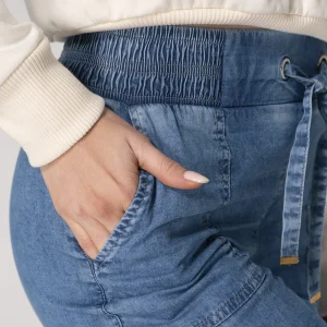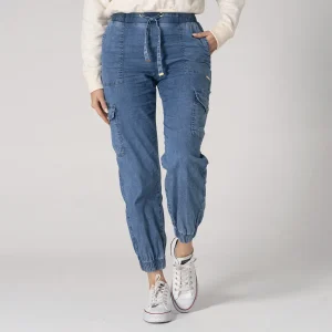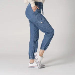 Jean Luv de nuestra Capsula Urban Glow silueta jogger combina comodidad y estilo con su diseño moderno. Cuenta con una pretina encauchada que se ajusta fácilmente mediante un sistema de cordón ofreciendo un ajuste personalizado, En la parte frontal dispone de bolsillos tipo parche para mayor funcionalidad mientras que en los costados incluye bolsillos tipo cargo con cierre de tapa de broche ideales para llevar objetos pequeños de forma segura y con un toque casual. Este pantalón jogger para mujer es perfecto para un look relajado y a la moda.