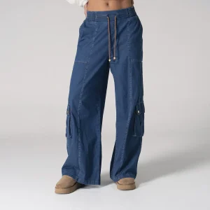 Pantalón Iris de nuestra capsula Urban Glow silueta wide leg cargo combina estilo y comodidad, Está diseñado con una pretina encauchada que incluye un detalle de cordón trenzado para amarrar ofreciendo un ajuste personalizado. En la parte frontal presenta bolsillos tipo parche y bolsillos cargo en los costados ideales para llevar objetos pequeños con facilidad. En la parte posterior, cuenta con bolsillos cargo con cierre de broche para mayor seguridad, Este pantalón para mujer es perfecto para un look casual y moderno, combinando funcionalidad y tendencia.