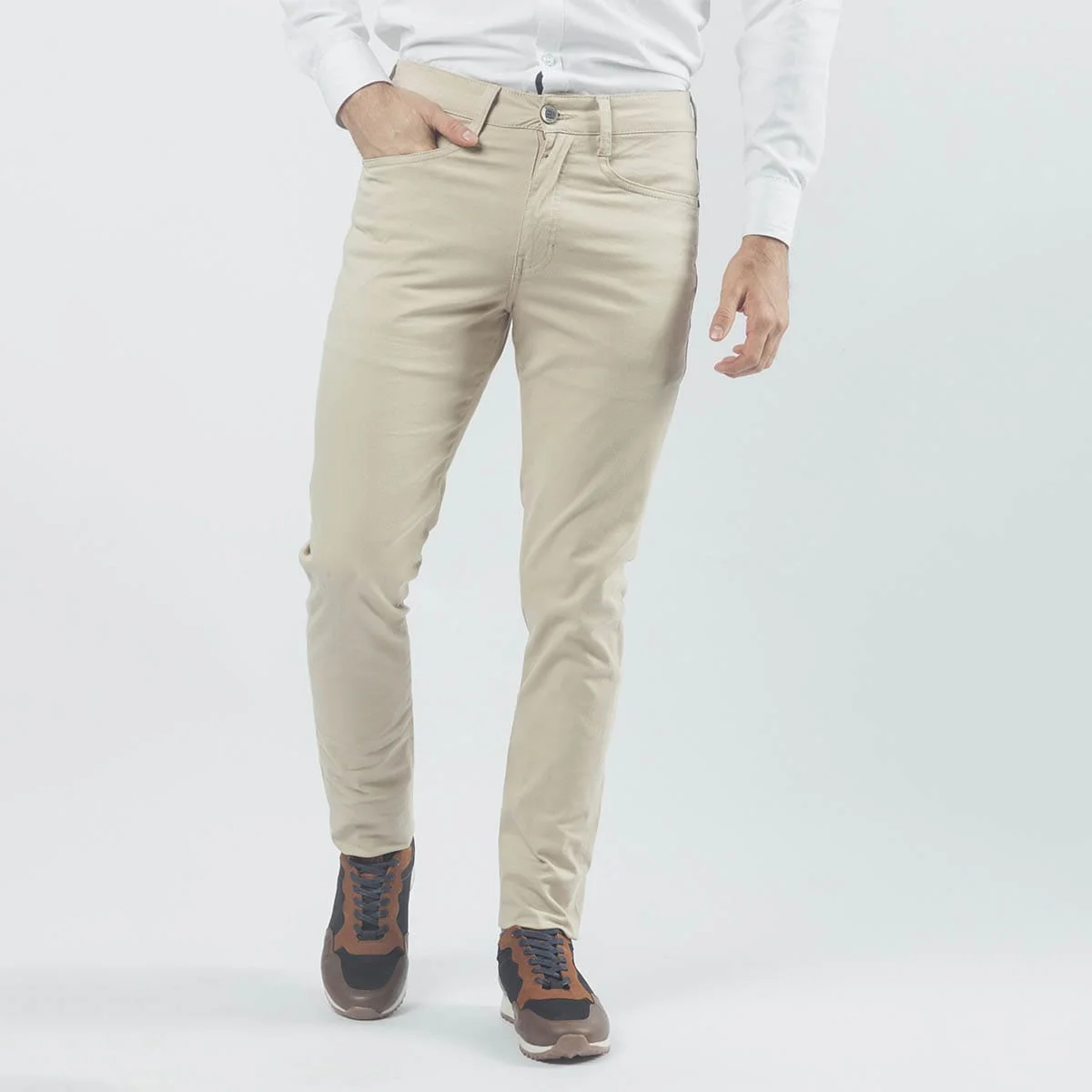 Patalón dril Oniv para hombre, silueta slim, tiro medio, cuenta con pretina de un solo boton, en la parte frontal cuenta con bolsillos redondos con relojero, en la parte posterior tiene bolsillos tipo parche.