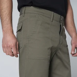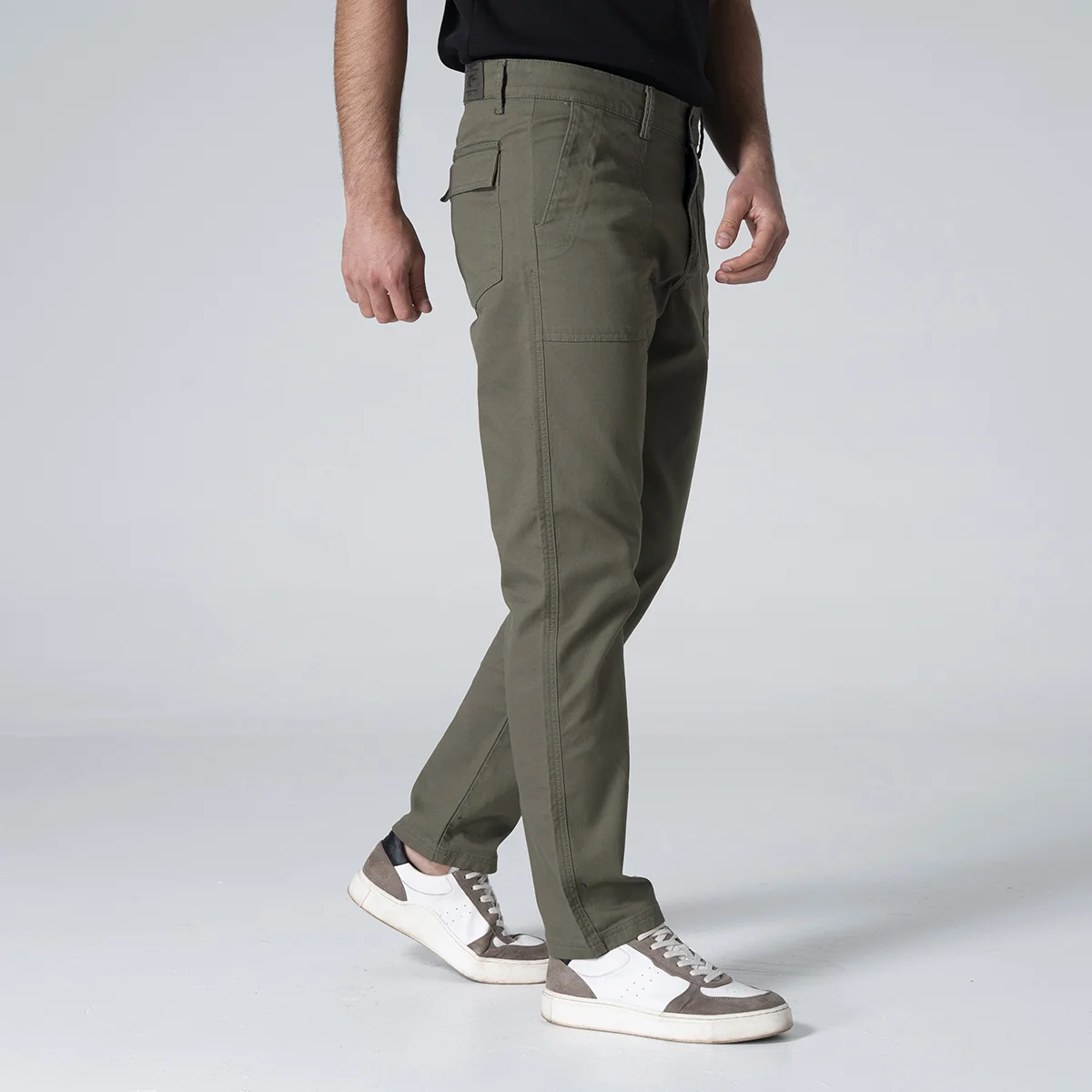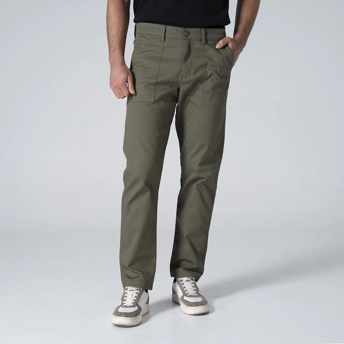 Pantalón Resort en dril presenta un diseño casual y cómodo, ideal para temporadas de descanso. Está equipado con una pretina de un solo botón que asegura un ajuste sencillo y práctico. En su parte frontal, cuenta con bolsillos diagonales estilo chino, proporcionando un toque moderno y funcional. En la parte posterior, dispone de bolsillos tipo parche, que añaden un estilo relajado y práctico al pantalón. Su tejido de dril lo hace resistente y duradero, perfecto para un look casual y versátil.