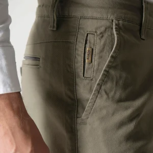 Pantalón dril Slim Turn es perfecto para aquellos que buscan un estilo moderno y elegante. Con bolsillos delanteros tipo chino, incluyendo un pequeño relojero lateral para un toque adicional de estilo, y bolsillos traseros tipo ribete en contraste con el cierre de botón, este pantalón seguro que destacará en cualquier ocasión.