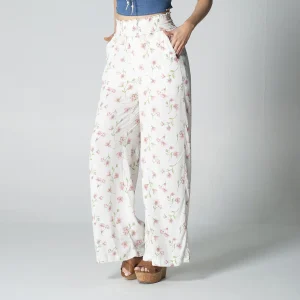 Pantalón Alok de nuestra Cápsula Secret Garden silueta Palazzo que brinda un estilo amplio y cómodo. Está diseñado con una pretina encauchada que asegura un ajuste firme en la cintura. Además, cuenta con un detalle de cordón para anudar, permitiendo ajustar la prenda según preferencia y añadiendo un toque de estilo casual y moderno, Este pantalón para mujer es ideal para un look cómodo y a la moda.