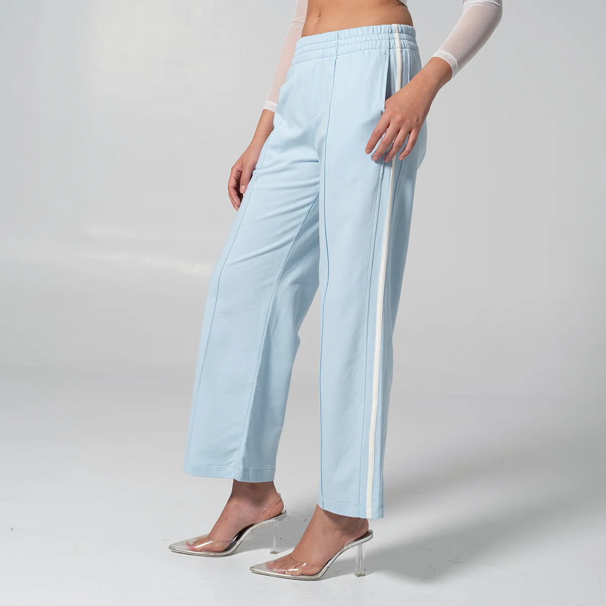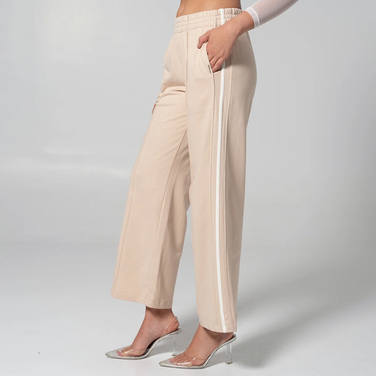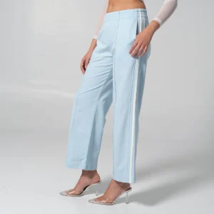 Además, a lo largo de los costados, presenta un corte con sobrepuesto en contraste que añade un elemento visual llamativo, para completar la funcionalidad, este pantalón cuenta con prácticos bolsillos laterales.