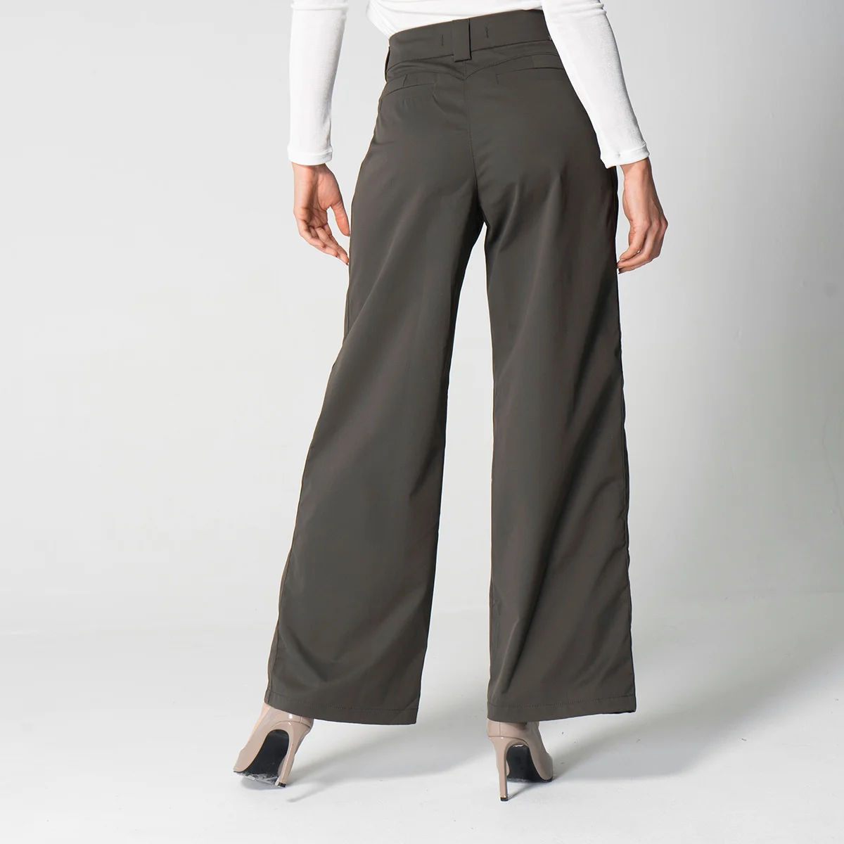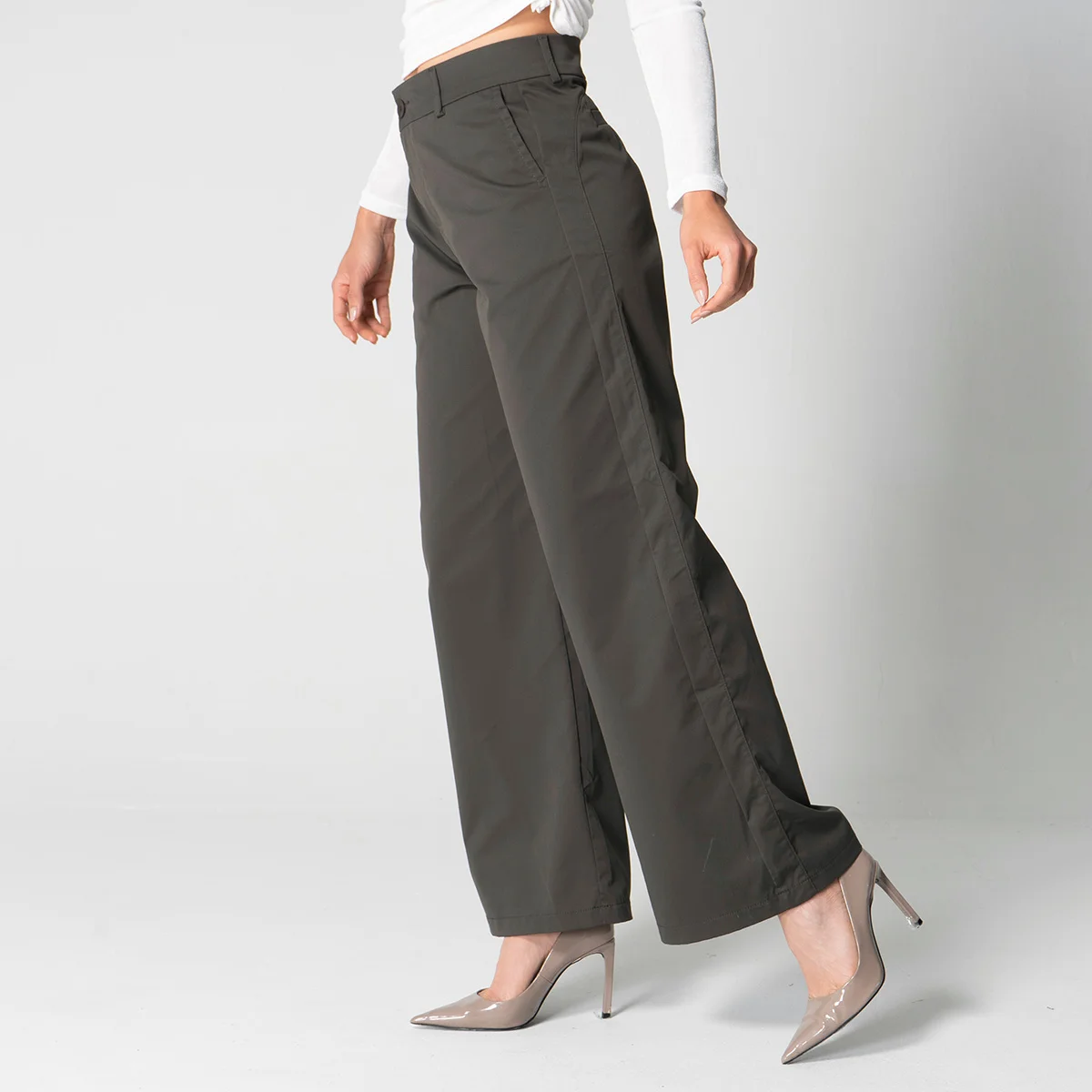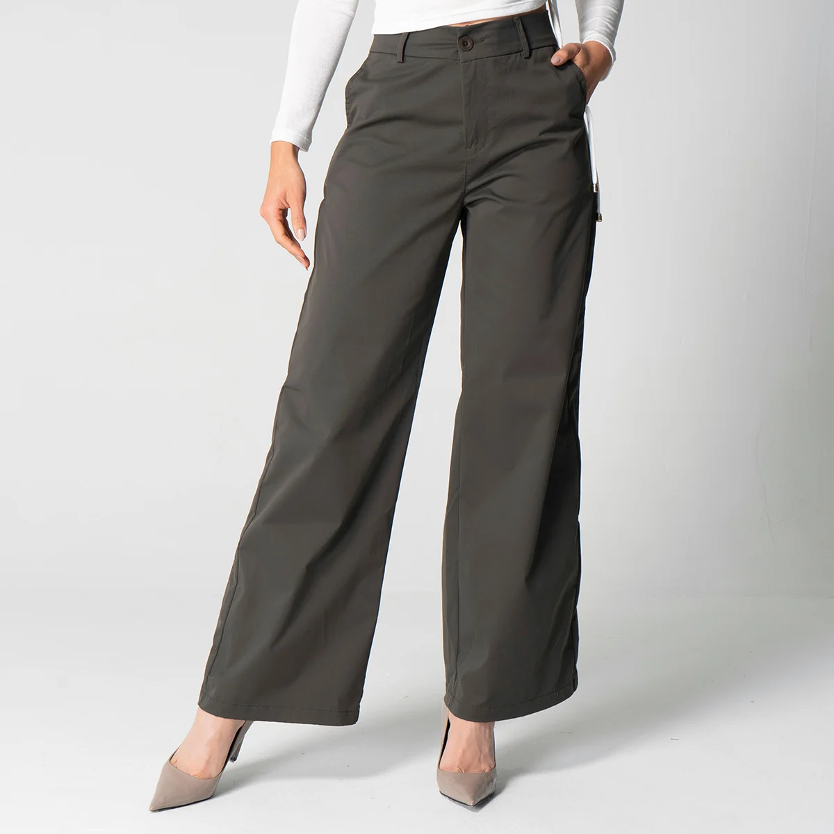 Pantalón Zac es una prenda de corte moderno, que se caracteriza por su silueta wide leg, lo que le proporciona un ajuste holgado y cómodo a lo largo de las piernas. Su diseño incluye una pretina de un solo botón, que añade un toque elegante y minimalista a la cintura. En la parte frontal, cuenta con bolsillos diagonales que no solo son funcionales, sino que también aportan un detalle estiloso. En la parte posterior, posee bolsillos tipo ribete, que añaden un elemento de sofisticación al diseño. Este pantalón es ideal para quienes buscan un equilibrio entre confort y estilo, perfecto para diversas ocasiones, desde un look casual hasta uno más formal.