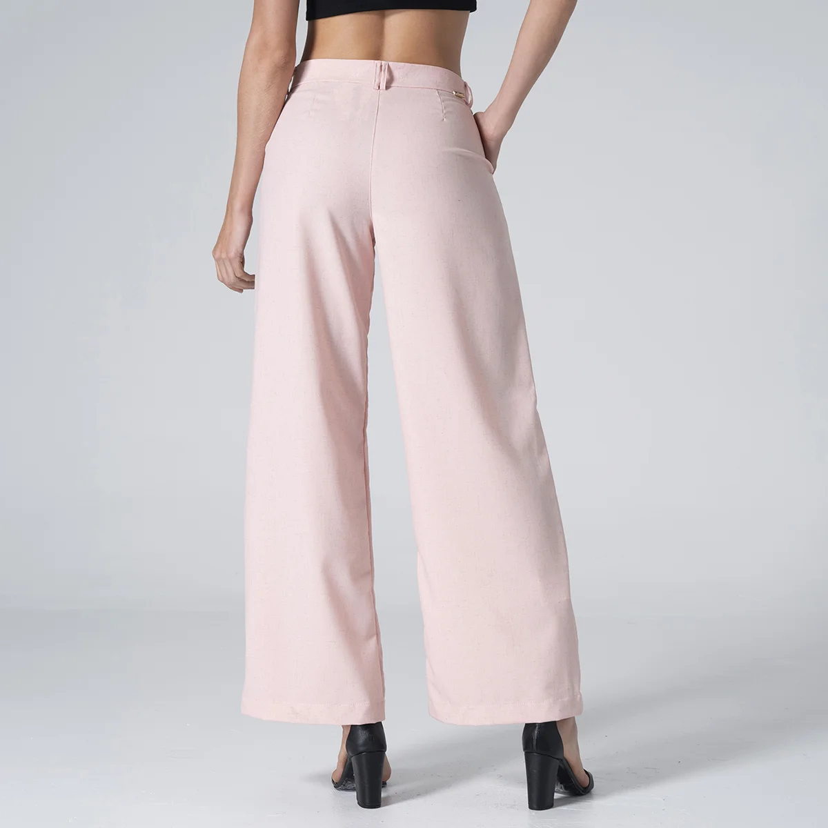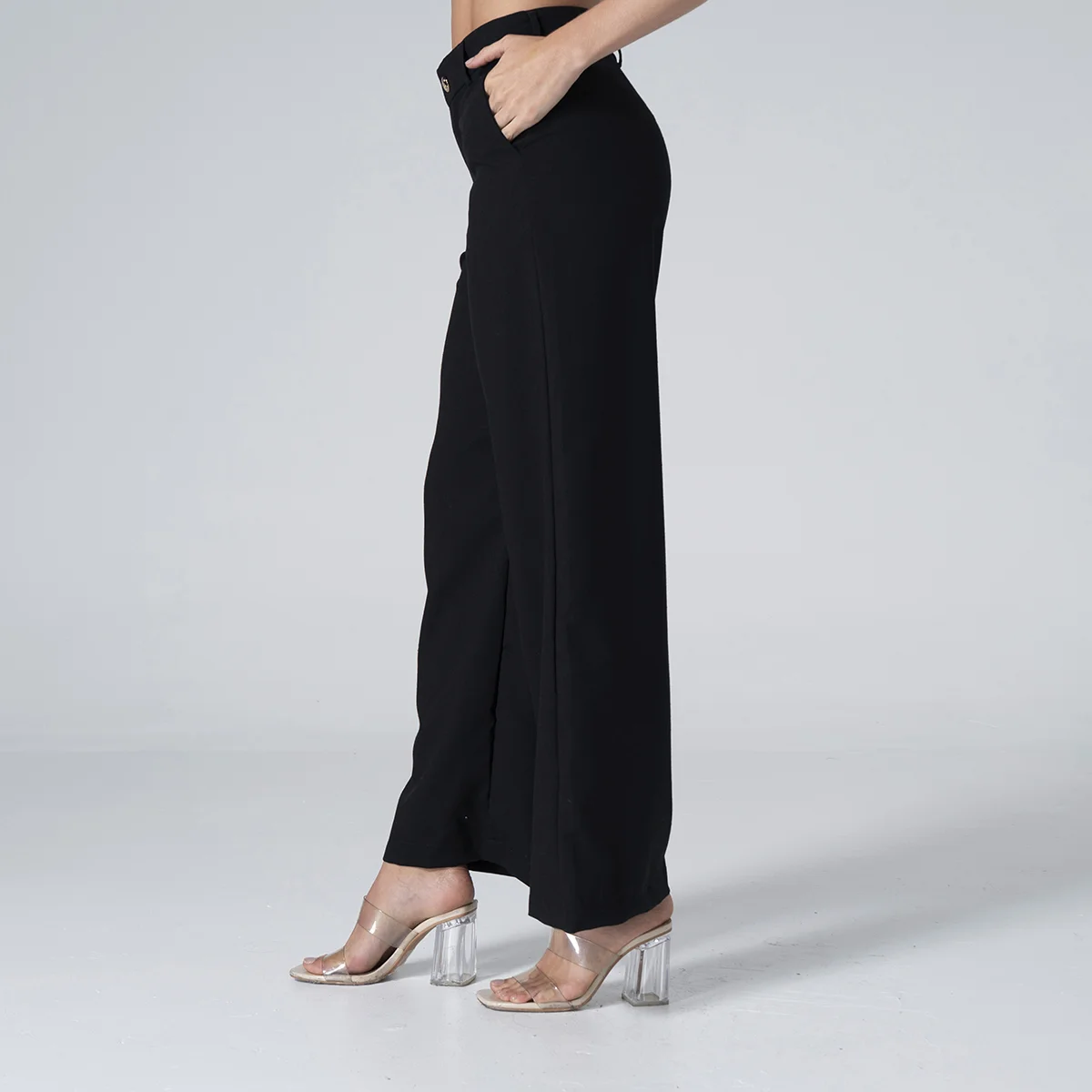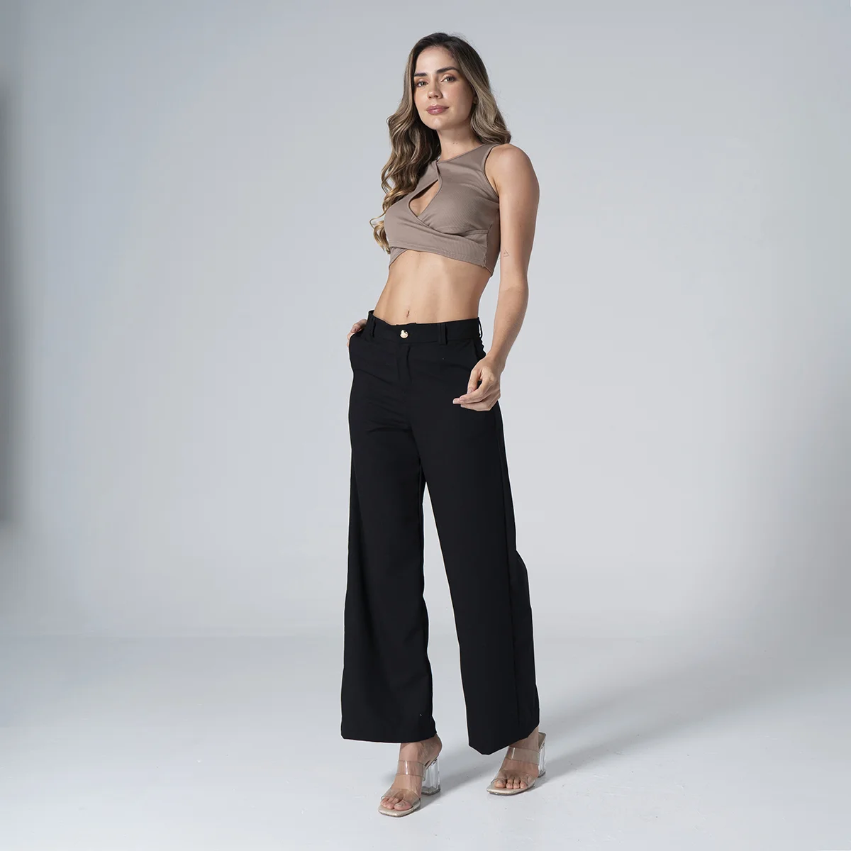 Pantalón Free de nuestra cápsula Metropolitan Breeze silueta wide leg presenta un diseño cómodo y moderno, ideal para un estilo casual o semi formal. Cuenta con una pretina de un solo botón que asegura un ajuste sencillo y práctico. Incorpora bolsillos laterales para mayor funcionalidad y detalles en la parte posterior con pinzas de realce que aportan estructura y un toque de estilo. Su corte amplio en las piernas ofrece libertad de movimiento y un aspecto relajado pero sofisticado.