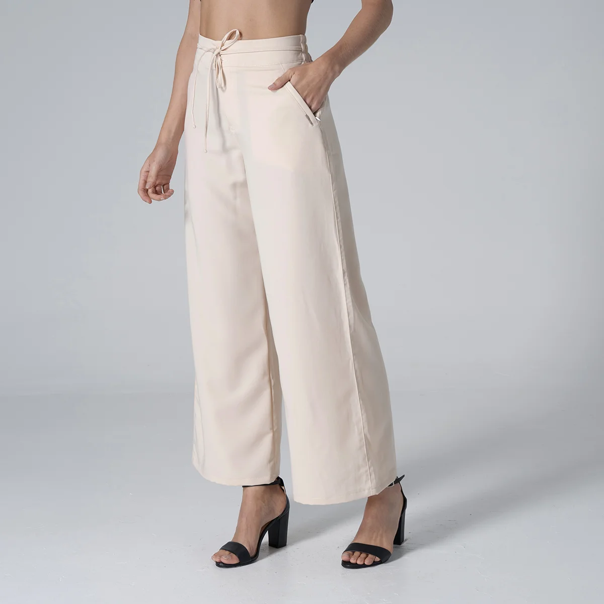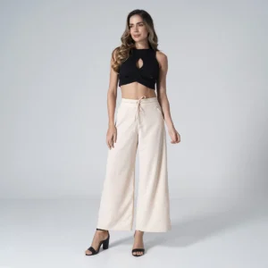 Pantalón Tag silueta Wide Leg, Su diseño tiene una pretina elegante de dos botones y cierre en cremallera complementada con una pretina trasera encauchada que asegura un ajuste perfecto y flexible. Además incorpora un cordón de ajuste en la cintura permitiendo el calce para una comodidad inigualable durante todo el día. Ideal para crear looks modernos y desenfadados sin sacrificar la sensación de libertad.
