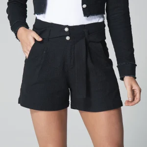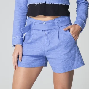 Short Gabrielle con pretina de dos botones, diseñado para brindar comodidad y estilo. Su parte frontal incluye bolsillos funcionales que aportan practicidad, mientras que, en la parte posterior, las pinzas de realce favorecen la silueta. Este short para mujer corto se complementa con un cinturón decorativo que añade un toque chic a cualquier look. Ideal para un día casual o una salida especial.