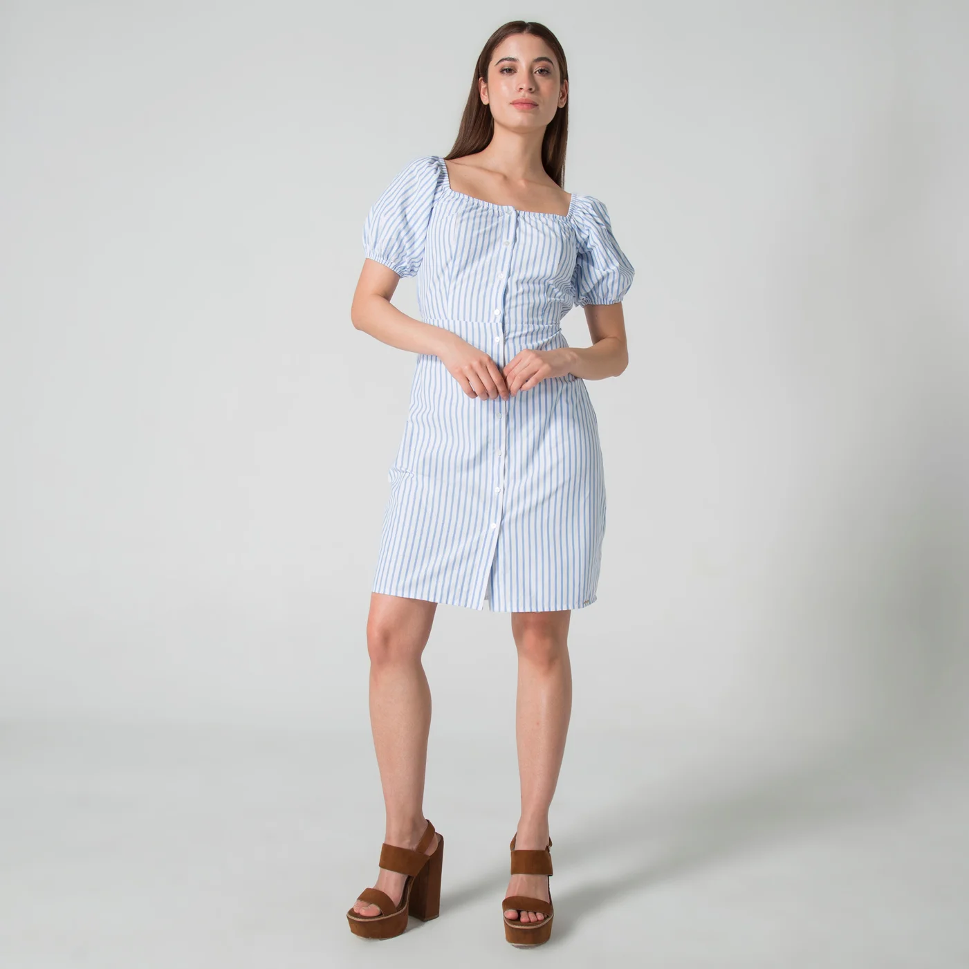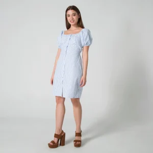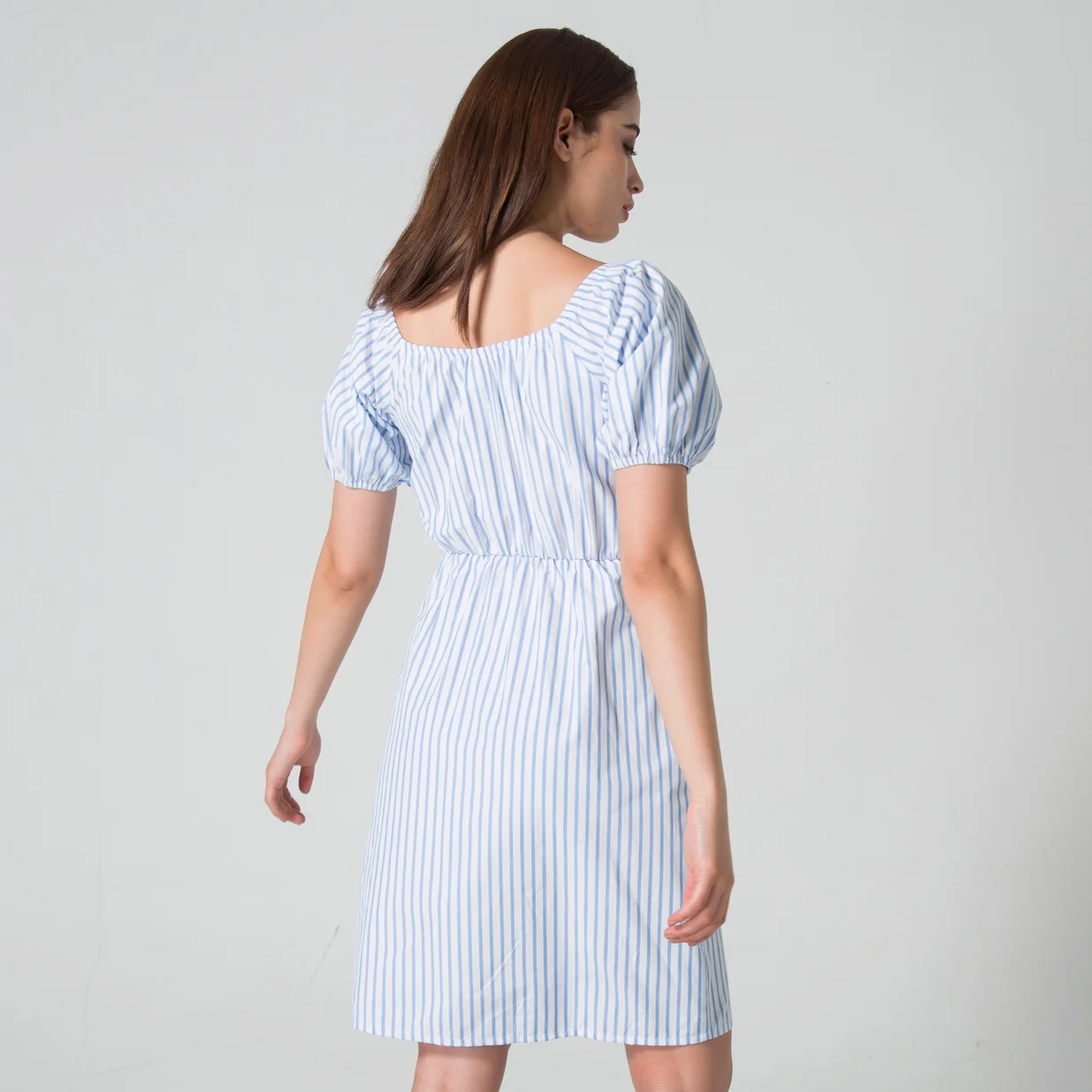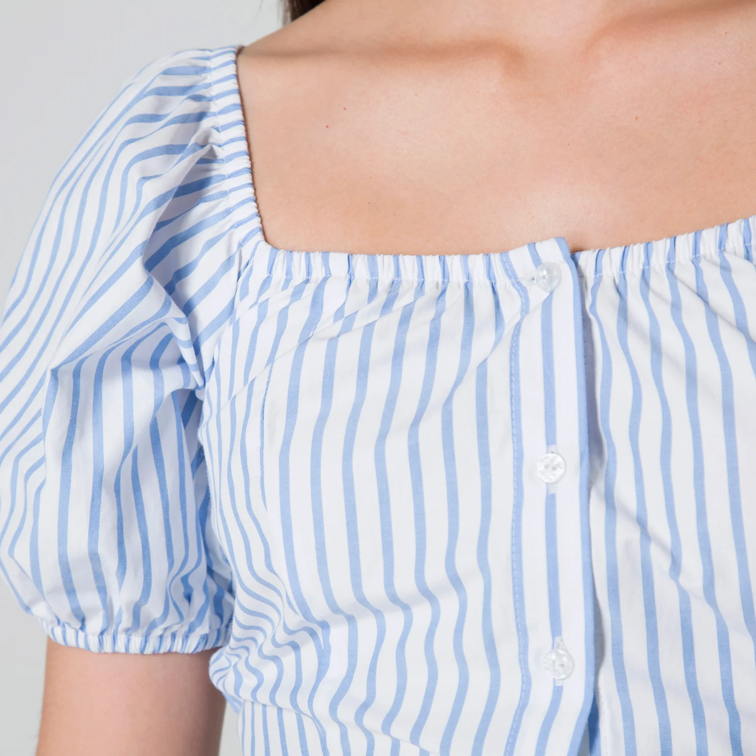 Vestido Genna es una prenda elegante y sofisticada que destaca por su escote bandeja, el cual realza el cuello y proporciona un toque distintivo. Sus mangas globo añaden volumen y un estilo romántico, brindando un contraste atractivo con el ajuste del resto del vestido. El sistema de cierre de botón le da un acabado pulido y funcional, permitiendo un ajuste cómodo y seguro.
