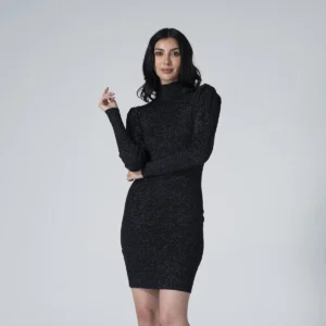 Vestido tejido Victory para mujer, la elección perfecta para destacar en tus ocasiones especiales, Con su elegante cuello alto y su silueta Slim, este vestido combina sofisticación y comodidad. Su diseño se distingue por la manga larga globo que termina en puños ajustados, acentuada con un delicado detalle de recogido en el hombro que le confiere un toque único y lleno de estilo. Simplemente espectacular para lucir radiante.
